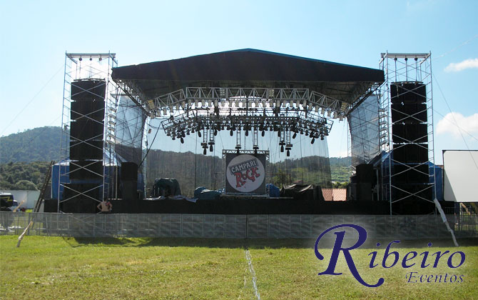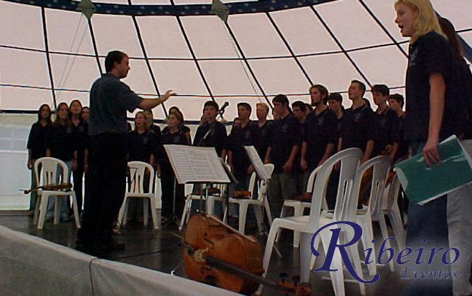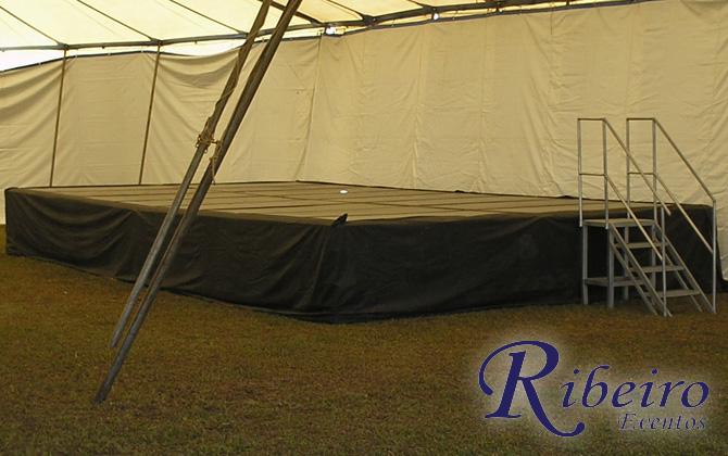 Estrutura para SIPAT: Cobertura tipo circo, palco para apresentação e climatização de ambiente.