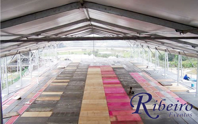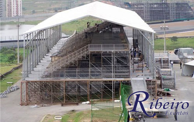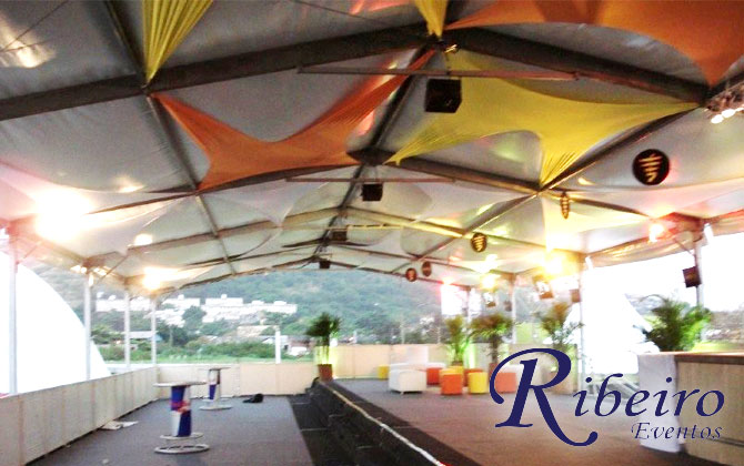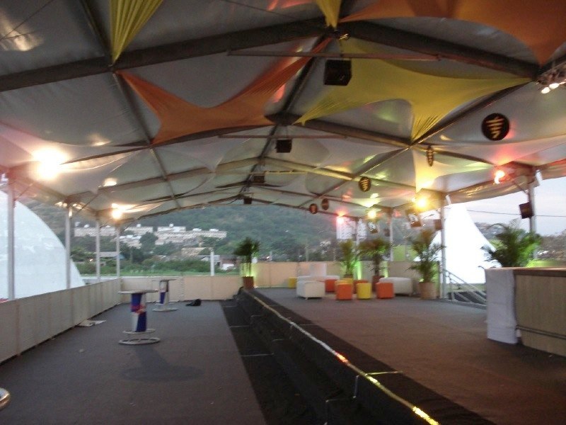 Estrutura para SIPAT: Cobertura tipo circo, palco para apresentação e climatização de ambiente.